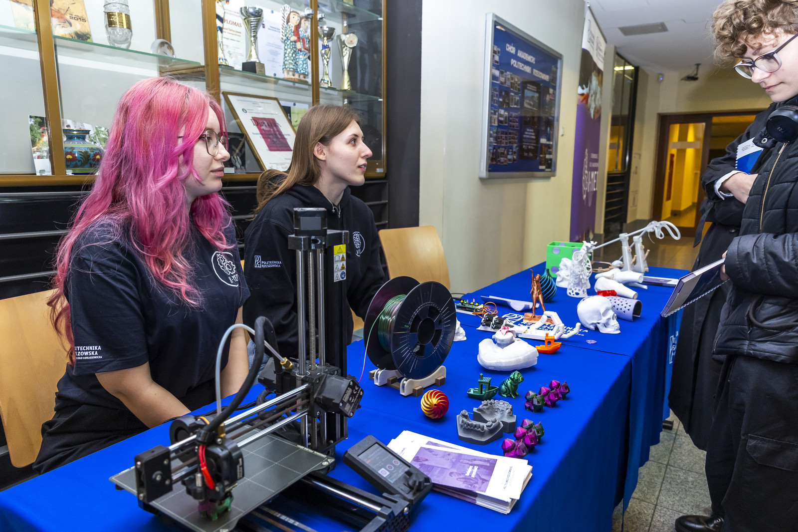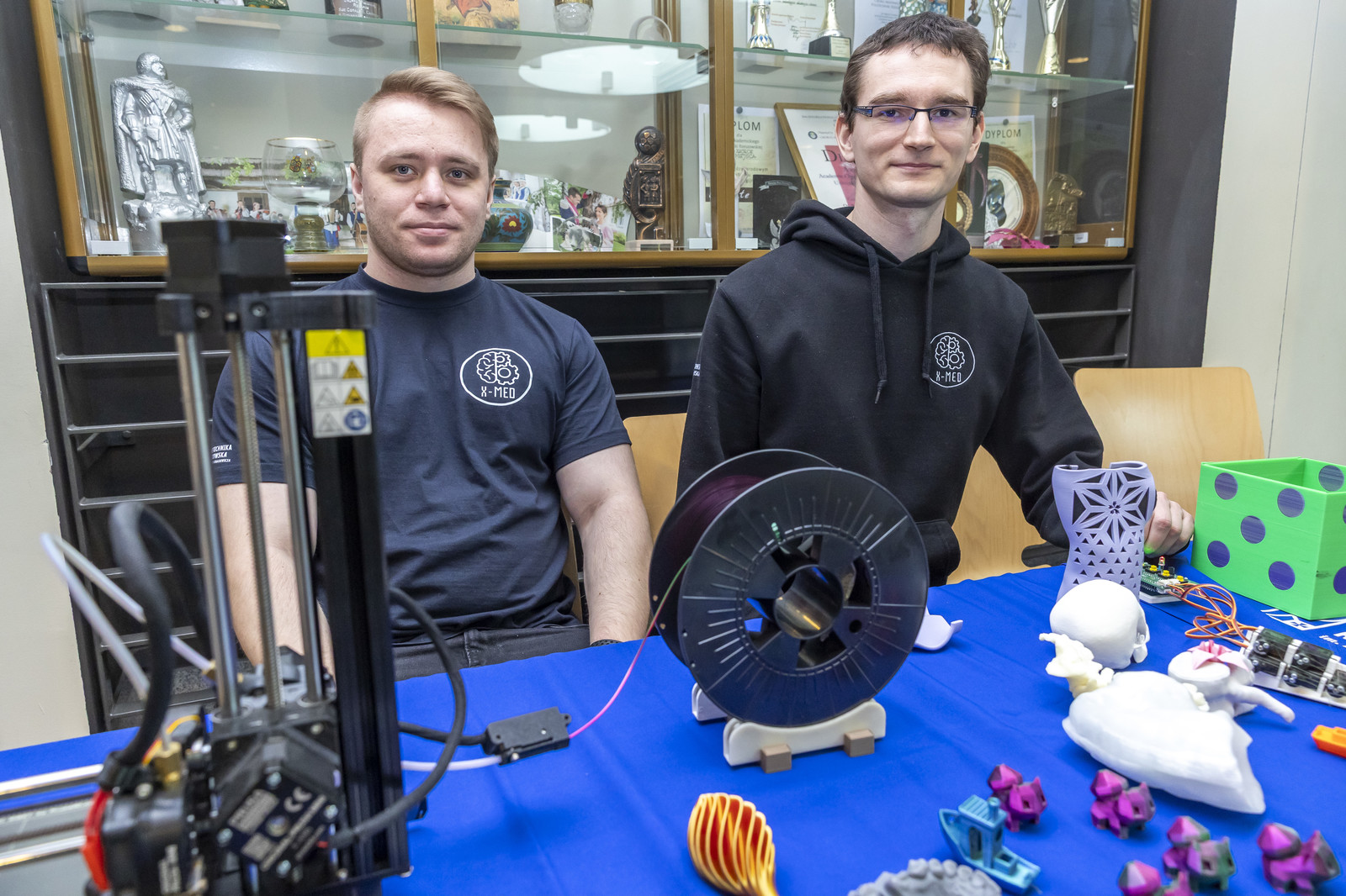 - Faustyna Sczutko, studentka i aktywna członkini Koła Naukowego X-med, przedstawiła wykład „Tworząc siebie: skan, edycja i druk 3D”, w którym pokazała, jak od pomysłu, przez skanowanie i edycję modelu, można przejść aż do gotowego wydruku. Uczniowie z zaciekawieniem słuchali o możliwościach, jakie daje nowoczesna technologia i jak każdy może stworzyć coś wyjątkowego.